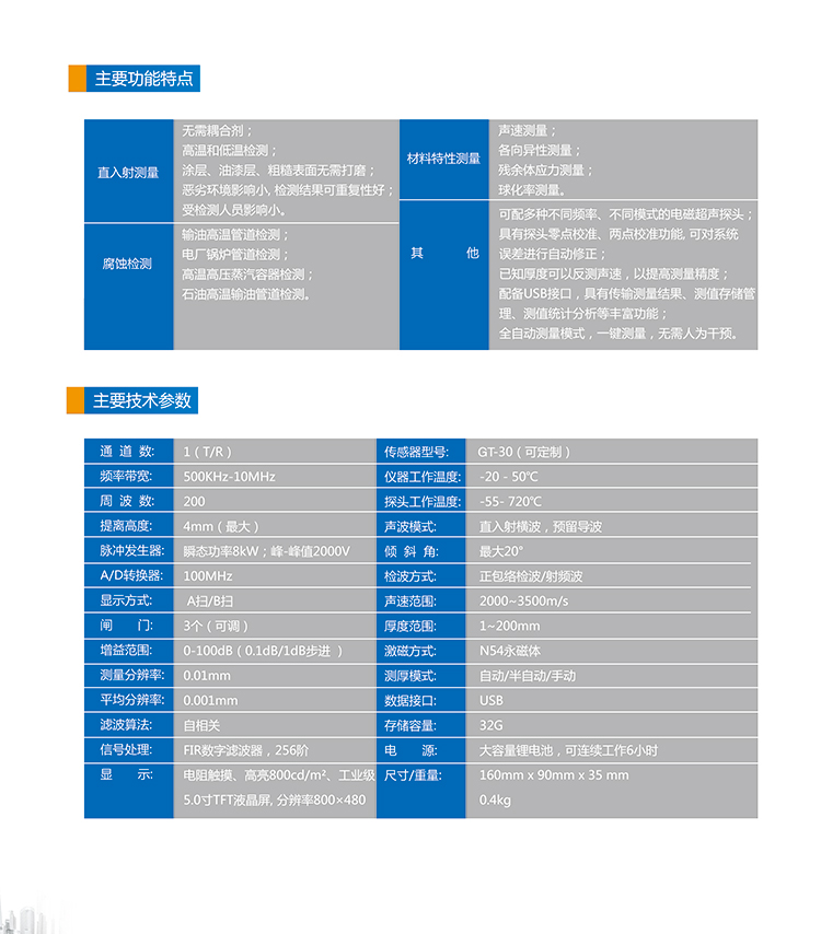 簡(jiǎn)介——可對(duì)各種板材和各種加工零件作測(cè)量,也可以對(duì)生產(chǎn)設(shè)備中各種管道和壓力容器進(jìn)行監(jiān)測(cè),監(jiān)測(cè)它們?cè)谑褂眠^(guò)程中受腐蝕后的減薄程度。