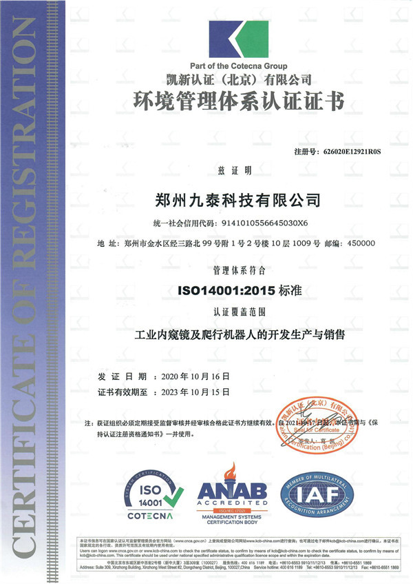 環(huán)境管理體系認(rèn)證證書(shū)